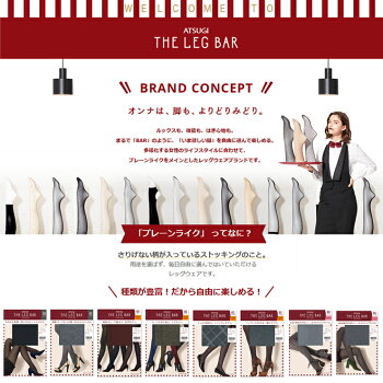 サイズ M〜L(ヒップ:85-98cm、身長:150-165cm) 特徴 ATSUGI THE LEG BAR(アツギ ザ・レッグ バー) 「オンナは、脚も、よりどりみどり。