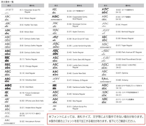 ●画像参考書体:Textile Regular ●画像参考カラー:バーンブラック注意事項※ルストブラウン、シルバーエイジングは、手拭き塗装のため写真と実物が異なる事があります。