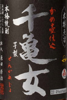 蔵出し限定芋焼酎千亀女 芋製 (せんかめじょ)2180.8 内容量 1800ml 度数 25度 商品特徴 この「千亀女」は、その「千刻蔵」にて手造りで醸された芋焼酎で、仕込み、貯蔵ともにかめ壺を使用し、昔ながらの木樽蒸留器で蒸留し、貯蔵酒とブレンドした口当たりのやわらかい、まろやかな焼酎です。